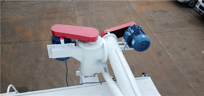 上裝罐體:罐體材質(zhì)采用4mm優(yōu)質(zhì)碳鋼板,整車3條絞龍,由3個(gè)5.5KW電機(jī)380V外接電源帶動(dòng)頂部絞龍用液壓控制舉升,可左右旋轉(zhuǎn)180°。罐體內(nèi)分為四個(gè)倉(cāng),可以獨(dú)立控制各分倉(cāng)卸料順序和速度。(備注:此報(bào)價(jià)為標(biāo)配,國(guó)產(chǎn)電機(jī),德力西電柜)
